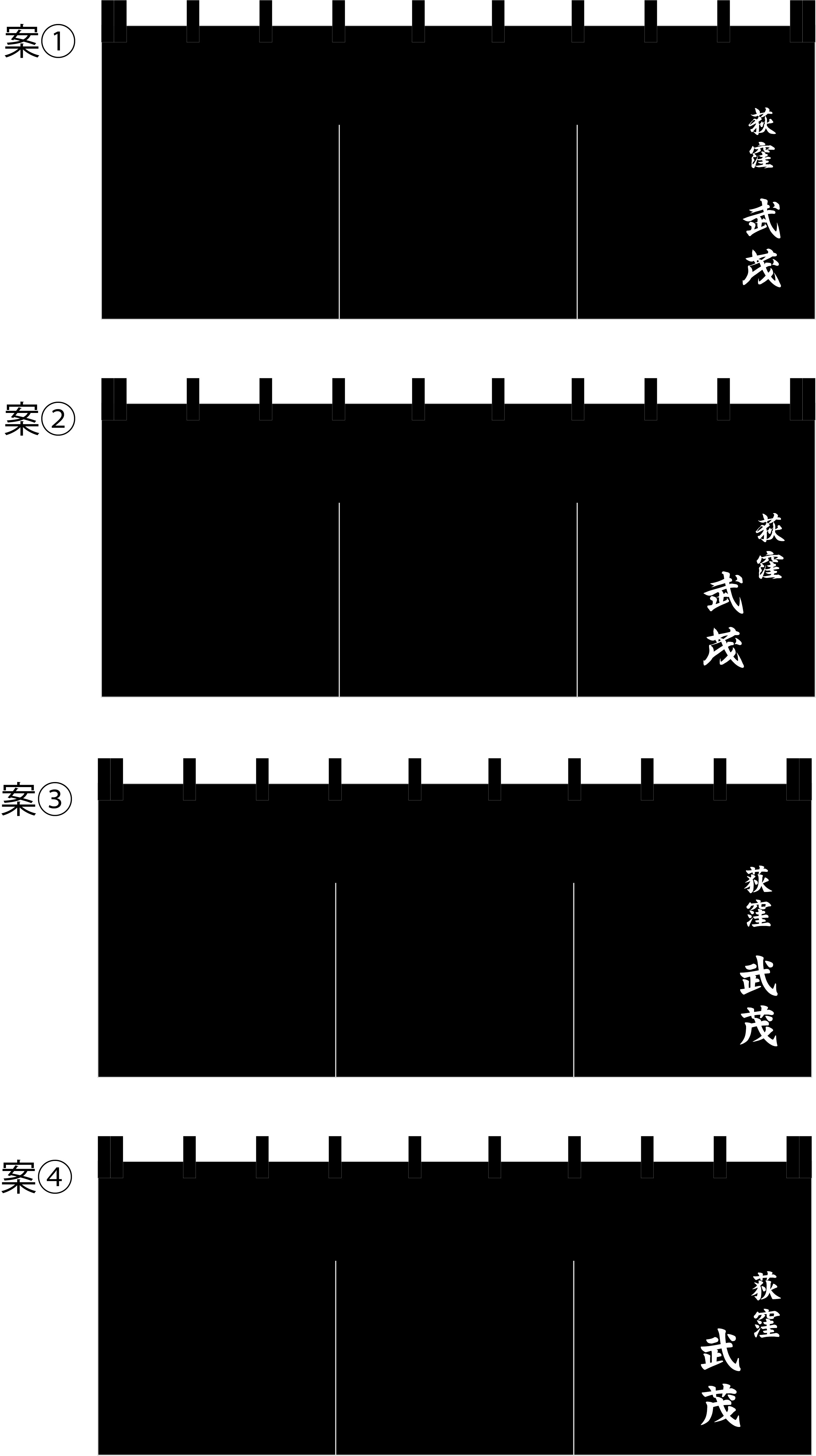 原稿の内容は、のれんの右側に「荻窪 武茂」の文字を白で名入れします。「荻窪」は少し小さめ、「武茂」の2文字は少し大きめにして原稿を作成しております。