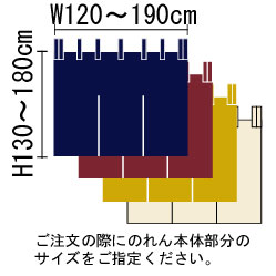 ご希望のサイズに仕上げますので、ご注文の際に暖簾の高さと横幅をご連絡ください。